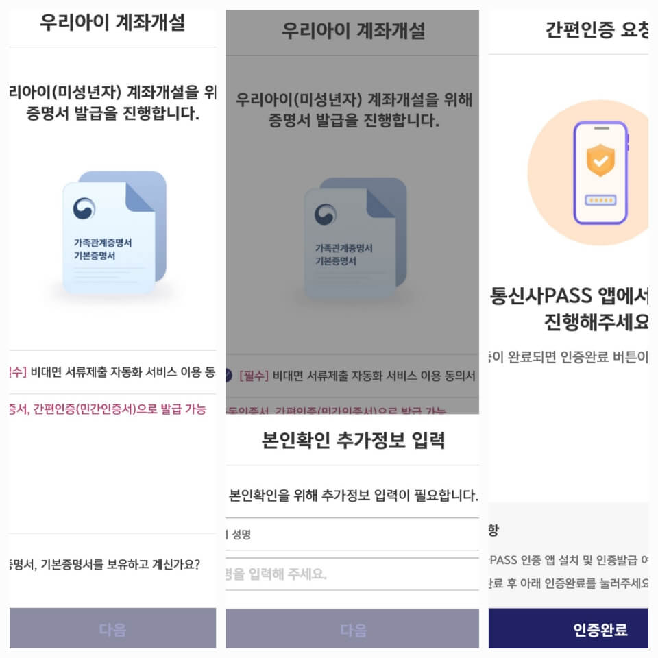 - 부모의 신분증으로 본인 확인을 진행합니다