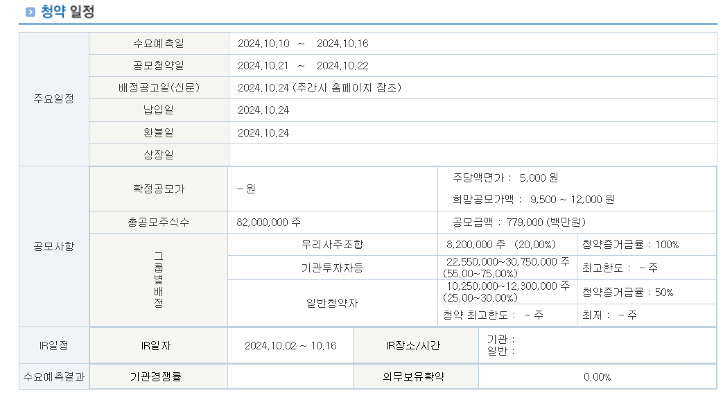 공모주 청약 일정 및 주요 정보