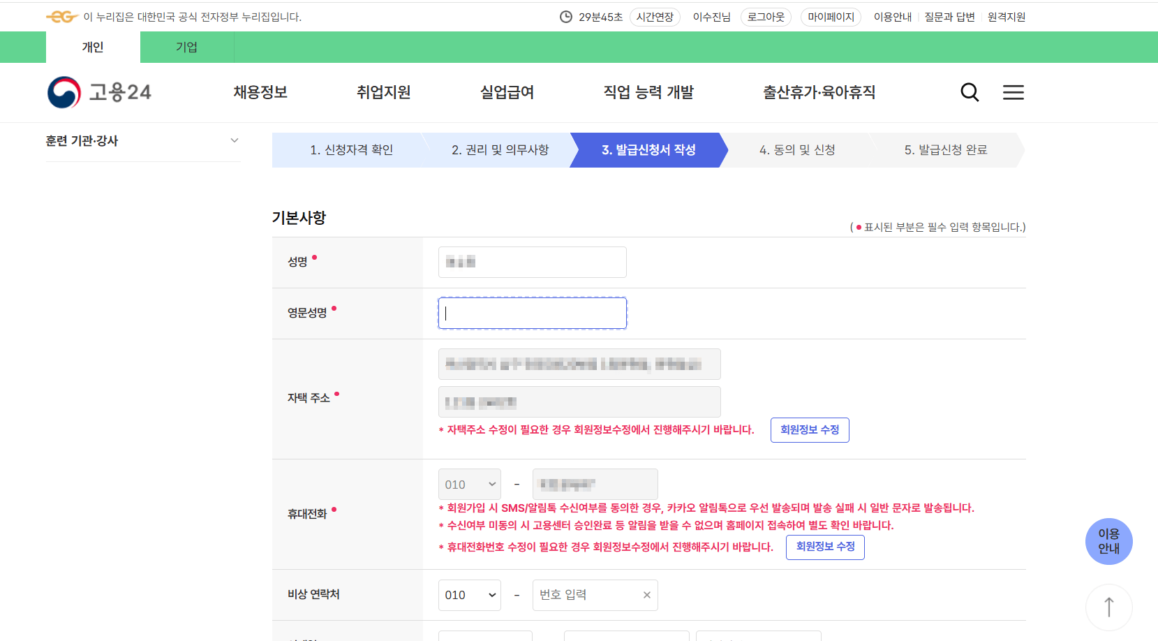 3. 로그인 후 신청서 작성 및 제출