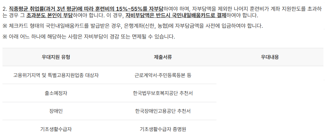 Q. 훈련비 자기 부담 비율은 어떻게 정해지나요?