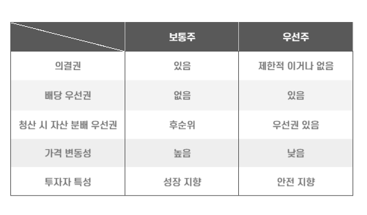 - 의결권 : 삼성전자 보통주는 의결권이 있어 주주총회에서 회사의 주요 의사결정에 참여할 수 있는 반면, 삼성전자 우선주는 의결권이 없습니다. 따라서 삼성전자의 경영에 참여하고 싶은 투자자라면 보통주가 더 적합합니다.